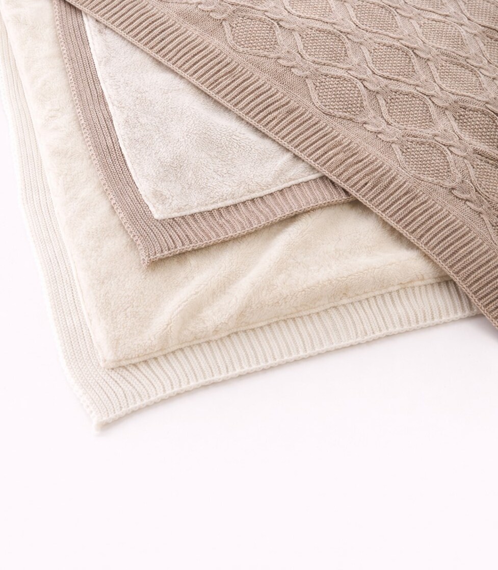 Дитячий плед, який поєднує стильний в’язаний дизайн та м’яку плюшеву підкладку. Верх виконаний із фактурною в’язкою, що виглядає елегантно та сучасно, а внутрішня сторона — надзвичайно ніжна й приємна до тіла.