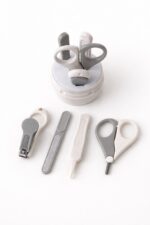 Практичний набір для догляду за нігтями немовляти, який допоможе легко та безпечно підтримувати гігієну малюка. У комплект входять ножиці із заокругленими кінчиками, щипчики для нігтів, м’яка пилочка та спеціальний інструмент для очищення.